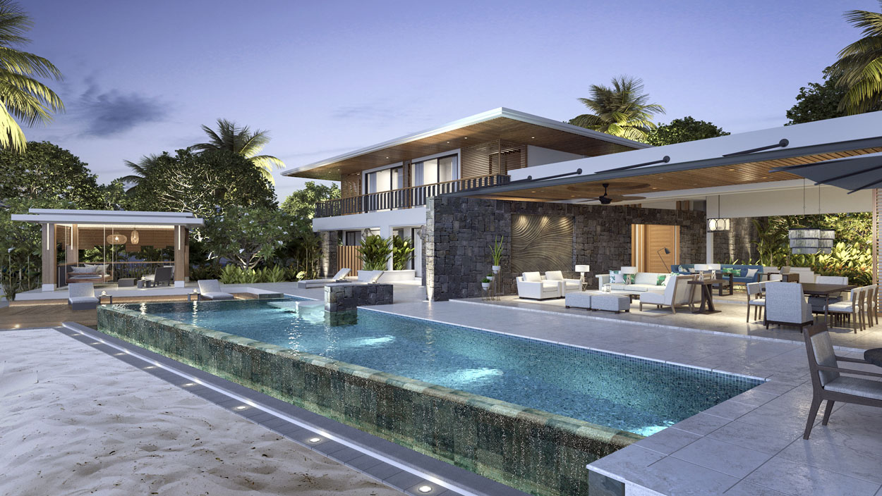 By acquiring this magnificent Premium villa of 575 m² which has 4 or 5 en-suite bedrooms subtly distant from the living areas, thus offering privacy and calm. The master bedroom has a magnificent view of the lagoon.