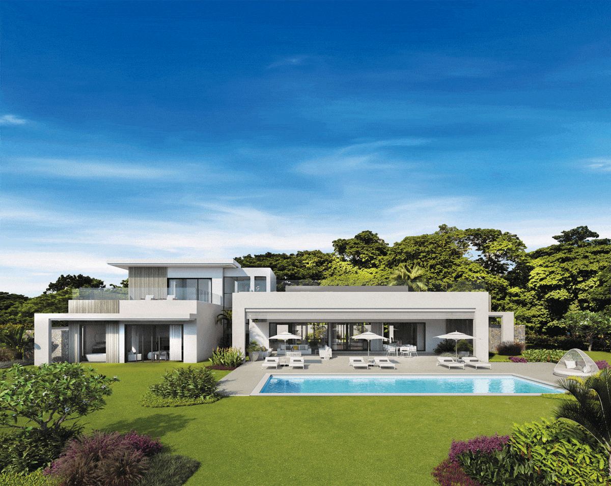 This magnificent villa of 351 m² on one level has 3 bedrooms with en-suites subtly distant from the living areas, thus offering privacy and calm. The master bedroom has a magnificent view of the furnished garden and the other two bedrooms overlook the backyard.
